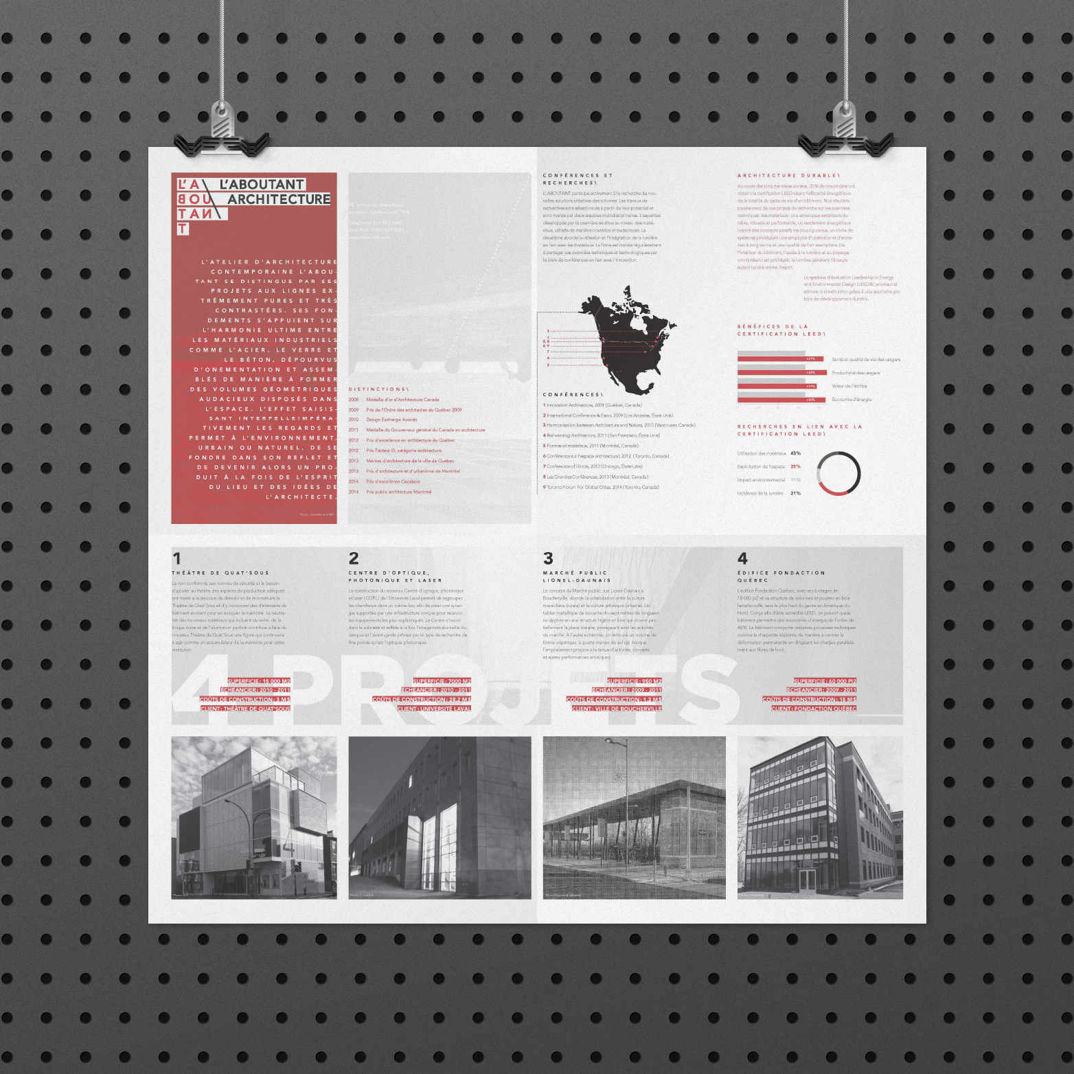 Type :graphisme Identité visuelle de l’agence d’architecture fictive L’Aboutant. Logo, papeterie, site web et affiche-dépliant. Juxtaposition, lignes droites et solidité. Publié par Audrey Bacon Graphiste | Rédactrice Voir tous les articles par Audrey Bacon